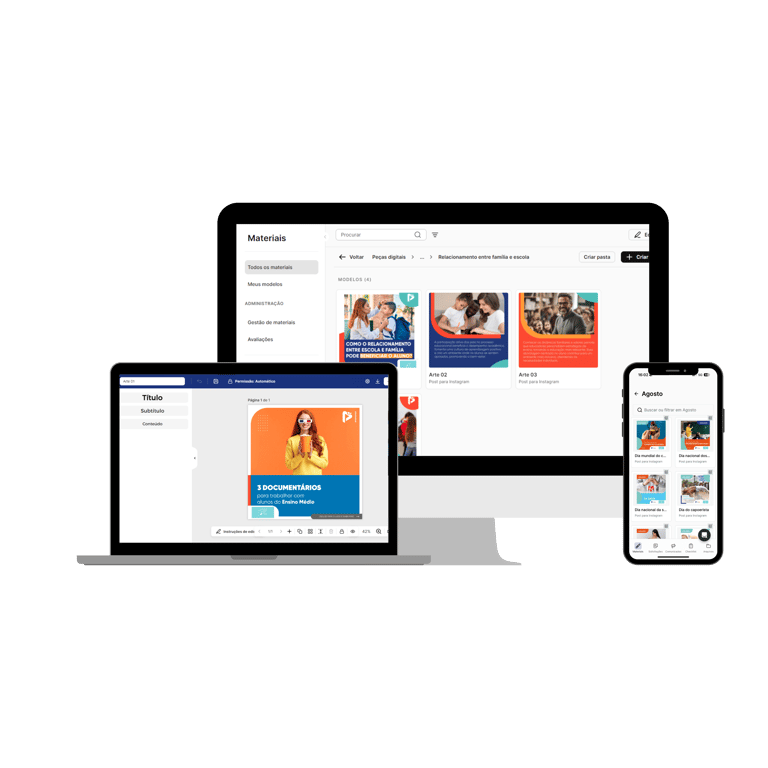 Tenha fácil acesso a diversas peças para redes sociais ou para impressão.